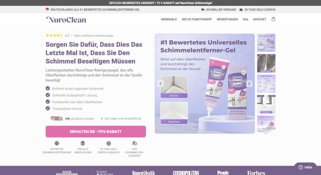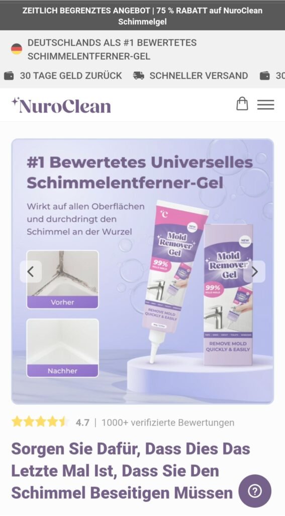 Besuchen Sie die offizielle NuroClean™ Webseite – 15.29 € pro Stück, 75 % Rabatt und kostenloser Versand.